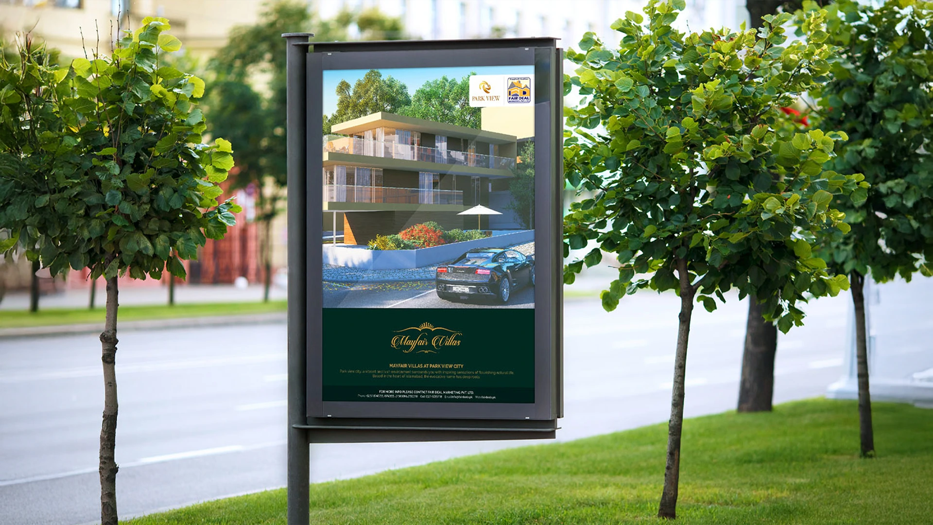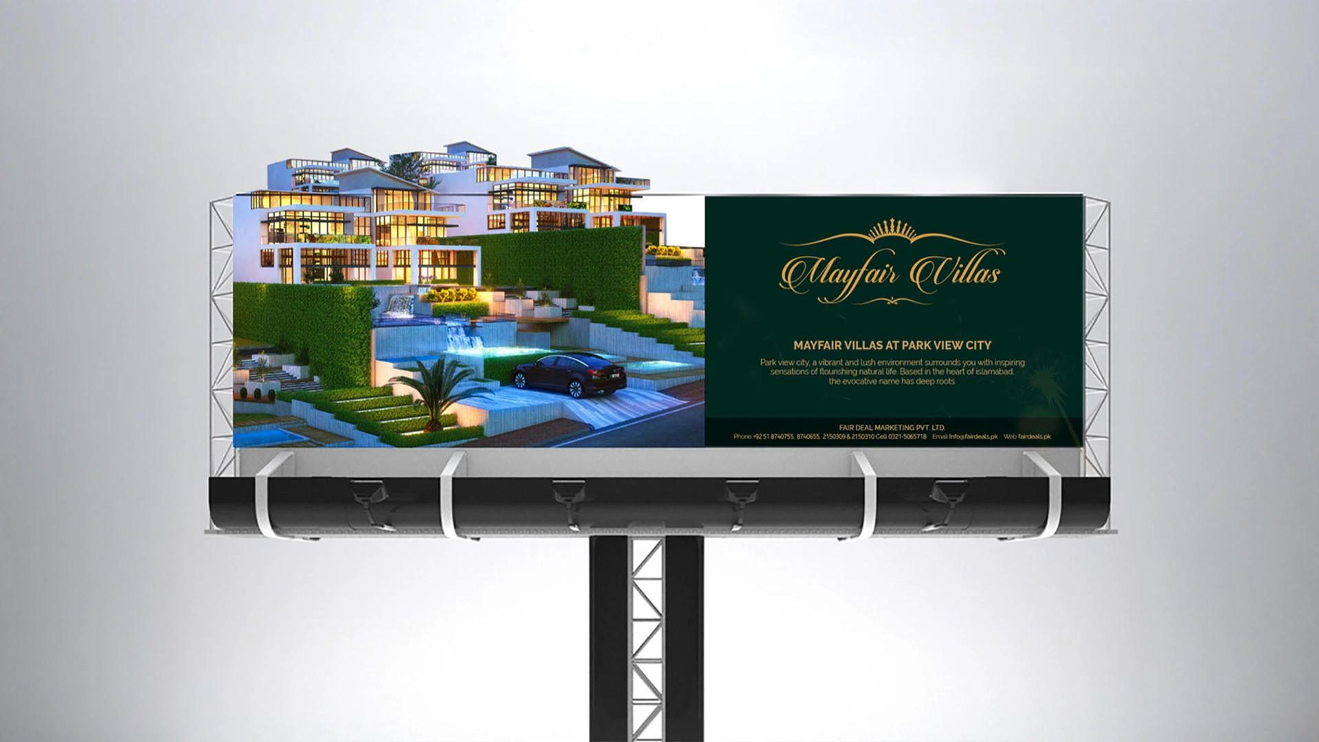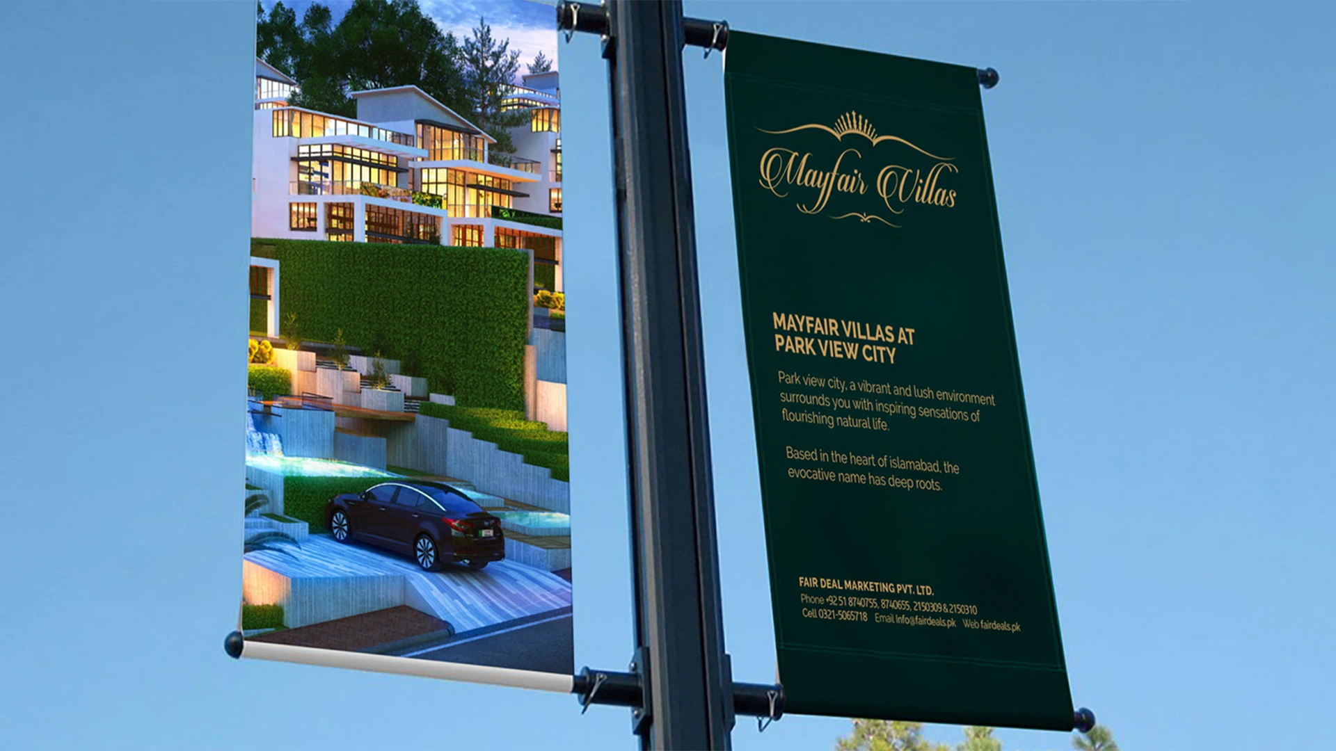 I’m asked to create a sub-brand for Park View City called “Mayfair Villas”, the challenge was to create an identity that is equally acceptable in local and international market, and can cater to a wider audience, as the name is inspired from a famous street in London “Mayfair Street” so tried to create an identity with bit of a royal touch.
